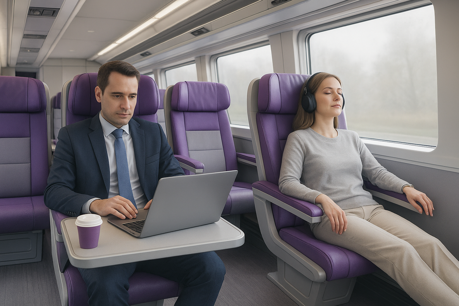 Door-to-door, it’s comparable to flying — but far more economical and with much more usable time to get work done.